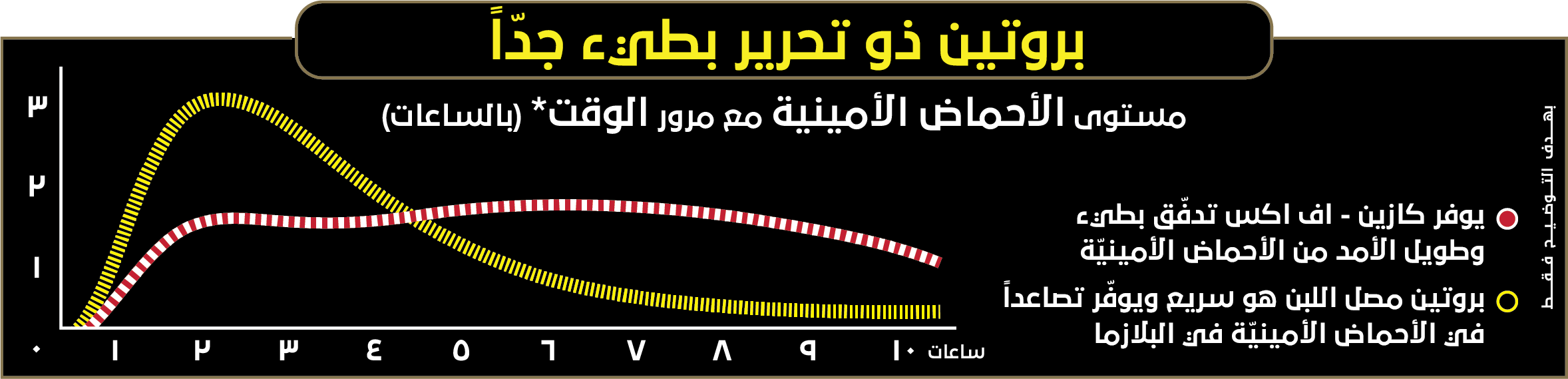 كازين-اف اكس هو الأفضل في تكنولوجيا بروتين بطيء التحرير. إنّ تناول كازين-اف اكس قبل النوم (أو في أي وقت لن تكون فيه وجبات غنيّة بالبروتين لفترة زمنيّة طويلة) يمنع حالة الانهيار العضلي.