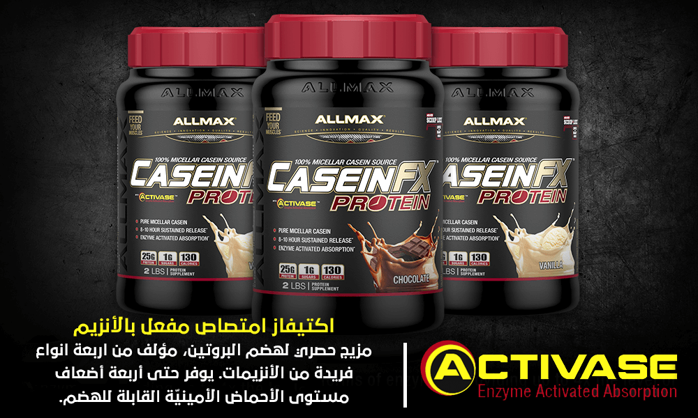 تم تعزيز كازين-اف اكس بتقنيّة أكتيفاز الجديدة، التي تعمل على زيادة كميّة الأحماض الأمينيّة الجاهزة للإمتصاص، من أجل تزويد مكاسبك بشكل مستمر. مع أكتيفاز هناك أربعة أشكال فريدة من إنزيمات هضم البروتين التي يعمل كل منها في مراحل مختلفة من الهضم، مما يوفّر ما يصل إلى أربعة أضعاف مستوى الأحماض الأمينية القابلة للهضم من البروتين! بالإضافة إلى ذلك، أضيف لاكتاز؛ إنزيم هضم اللاكتوز الذي يساعد على منع الانتفاخ أو الغاز أو عسر الهضم الذي يمكن أن يحدث مع بروتينات أخرى! إذا كنت حساسًا من لاكتوز اللبن، فهذا هو البروتين المثالي لك! احصل على المزيد من كل مكيال بروتين مع أكتيفاز !