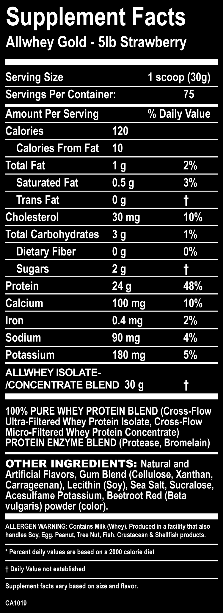 اولواي غولد هو مصدر بروتين مصل اللبن 100٪ فائق الجودة مع 24غ بروتين في كل 30غ؛ مما يعود الى %80! اولواي غولد يُهضم بسرعة، هو قليل الكربوهيدرات ويحتوي على غرام واحد فقط من السكّر الطبيعي لكل وجبة. يؤمّن بروتين نظيف متكامل وكامل، مصدره بروتين مصل اللبن بنسبة 100٪ مع عدم إضافة أحماض أمينيّة غير بروتينيّة.