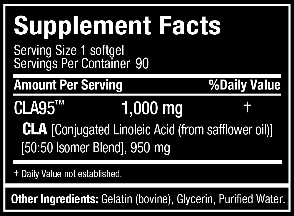 يحتوي هذا المنتج من اولماكس على ايزومير CLA نشط بنسبة 95٪ أي 950 ملغ من سي-أل-أي نقي لكل 1000 ملغ كبسولة هلاميّة. يعمل سي-أل-أي على تخفيف الدّهون في الجسم عن طريق منع تراكمها في الخلايا الدّهنيّة، وقد تبيّن أنّه يعزّز عملية التمثيل الغذائي الطبيعي للدّهون في الجسم، ممّا يسهّل عمليّة تنشيط الجسم.