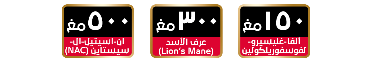 لقد أضيف أيضاً اثنين من المكوّنات التي يعتبرها معظم الباحثون الإدراكيون من أفضل المعزّزات العصبيّة: ألفا-غليسيرولفوسفوريلكولين (Alpha-GPC) ومستخلص عرف الأسد (Lion’s Mane Extract). ألفا-غليسيرولفوسفوريلكولين هو أحدى المكوّنات الّتي تعتبر الوسيلة المثلى لتوصيل كولين عبر الحاجز الدموي الدماغي. يحتاج الدماغ إلى إمداد ثابت من الكولين الّذي هو بمثابة المادّة الخام لأسيتيل-كولين.