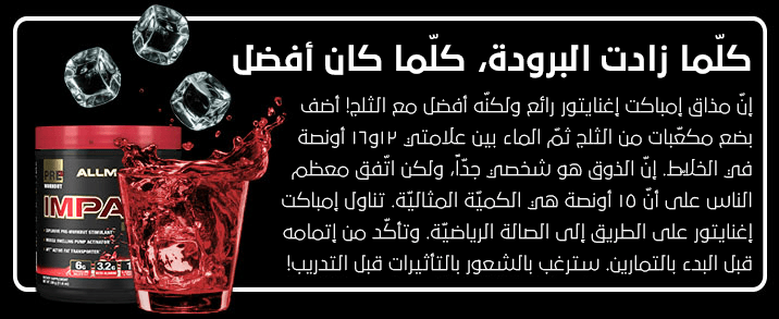 فكّر في سبب ممارستك للتمارين. تتدرّب للحصول على النتائج. اختر مكمّلاً ملتزمًا بنفس القدر لتلك النتائج. مع منتج مركّب بهذه القوّة، كنت ستجد، عادةً، صعوبة في الهضم، ولكن ليس مع إمباكت إغنايتور.